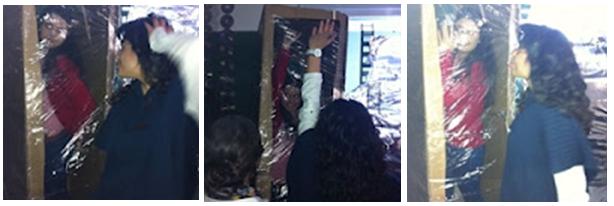 - Mª Teresa Hernández Illán: Esta instalación, ha sido la de mi grupo. Este trabajo, me ha gustado mucho realizarlo, aunque al principio mis compañeras no sabían en realidad que queriamos transmitir, luego pudimos observar que se divertieron con el mismo. Con esta instalación queriamos transmitir como te ves tú.